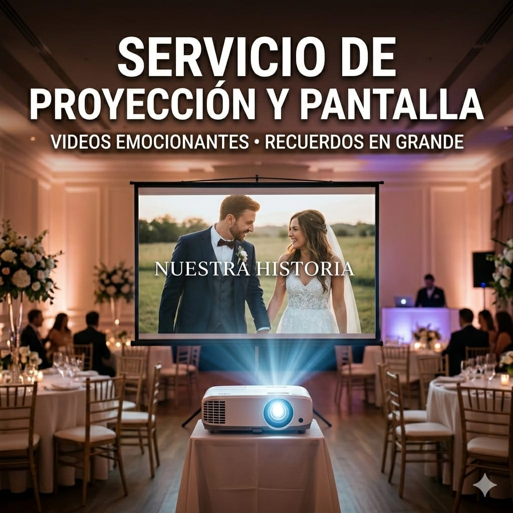 ¡Reviví los mejores momentos en grande! Te ofrecemos nuestro exclusivo Servicio de Proyección y Pantalla Gigante para que no te pierdas ni un detalle. 📽️ Proyección de Alta Luminosidad: Proyectores profesionales de última generación para reproducir videos, fotos y presentaciones con la máxima claridad. 📺 Pantalla Gigante: Pantallas de gran formato para que todos tus invitados puedan disfrutar de la proyección desde cualquier rincón del salón. 💻 Operación de Video: Nos encargamos de todo: armado, conexión, reproducción y operación de video para que no tengas que preocuparte de nada. 🤝 Control Total: Accedé a tu portal de autogestión para ver el estado de tu cuenta, pagos realizados y reportes actualizados. Este servicio administrativo es gratuito para clientes de nuestros packs premium de FunScreen.